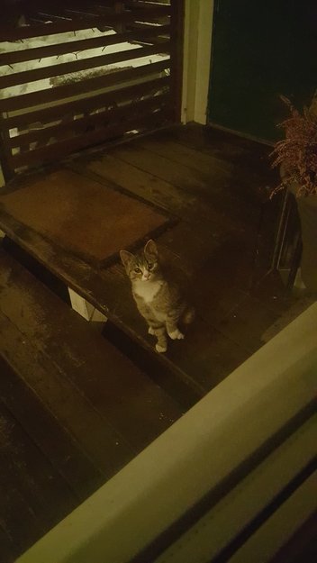 Liten jentepus kom til oss og har vært rundt her noen dager. I går fikk den mat og fikk sove i pledd ute. Min katt passer på hele tiden (kastrert) men har fått seg kjæreste