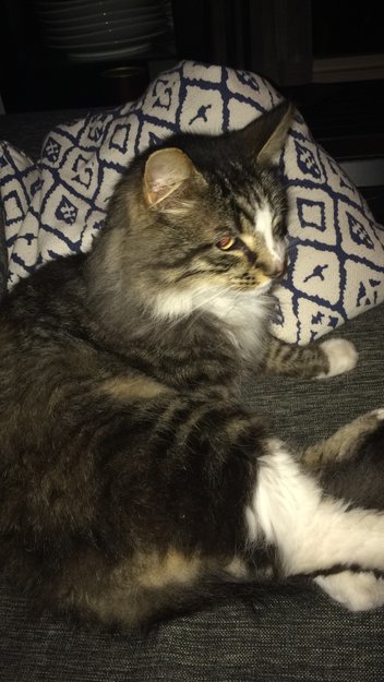 Sort/gråbrun, hvit hannkatt var savnet i Kristiansand