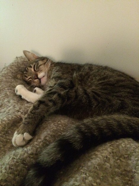 Kristoffer lyder pus. Han er veldig tillitsfull og veldig glad i mennesker. Han er stripete med hvite poter og hvite under haken/ halsen. Han er ID merket, kastrert og ca 2 år gammel.