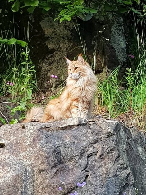 Han lyder navnet Mjaudun. Han er en rødtabby (oransje) hannkatt på snart 4 år. Semilanghåret (langhåret). Veldig snill men redd hunder. Litt gaupelignende utseende. Han er kastrert og chipet.