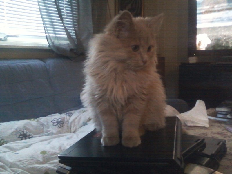 Relativt feminin hannkatt, både pga pelsens farge og lengde. Tillitsfull og heller lite frykt for hunder. Katten er tynn, men har veldig mye champagne farvet pels, så å si ensfarget. pga mye floker har han stedvis vært barbert ergo er ikke pelsen jevnt lang. Heller ikke fri for floker.