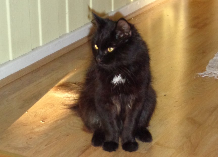 Max er svart, men er litt brun på underkroppen. I tillegg har han er hvit flekk på halsen og magen. Han er fire år og ser liten ut for alderen. Øynene hans er gule, men er mer grønne innerst ved pupillen. Han er glad i kos.