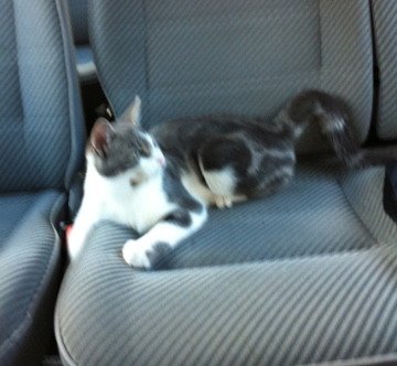 I dag 24/8 fikk vi napp via avis annonsen. Pusen var tatt inn på et dagsenter langt unna heimen. Det var vår katt som var veldig sulten og veldig happy over å se broren sin igjen etter 12 dagers separasjon. Nå skal de holdes inne en stund og få komme til veterinær for kastrering og chipping.