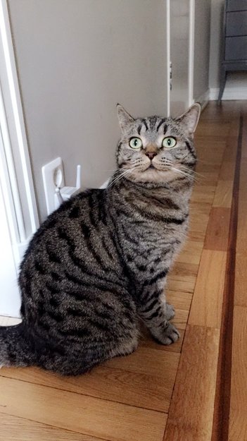 Cinelli er stripete - grå, sort og brun. Hun er ganske flat i ansiktet.