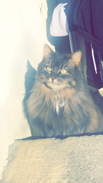 Katten kom ikke hjem om morgenen. Siden har den kanskje blitt skremt av bygging/sprengning her i området, og ikke funnet veien hjem.