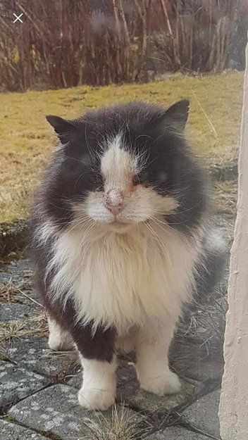 Jeg har observert denne pusen utenfor hos meg noen ganger. Den er redd og ønsker ikke noe kontakt med mennesker, så har ikke fått vært i nærheten av denne, eller fått tatt den inn til meg .