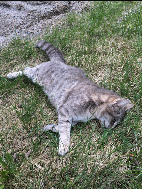 Katten ble tatt vekk fra veibanen av de som kjørte på. Ikke sjekket for chipp 😔
