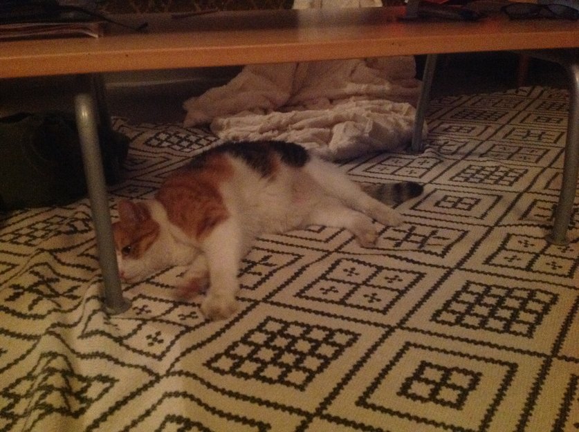Katten fulgte etter oss og virket som om den var bortkommet. Den er gravid og søkte nærhet.