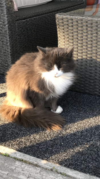 Grå med litt hvitt hunnkatt ble funnet i Tønsberg