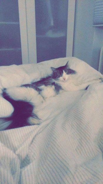 Fru (registrert som Mie, bruker kjælenavn) ble sluppet ut i går formiddag. Normalt kommer hun tilbake innen noen timer, og går sjelden langt hjemmefra. Aldri ute på natten. Hun har nå vært borte halvannet døgn.
