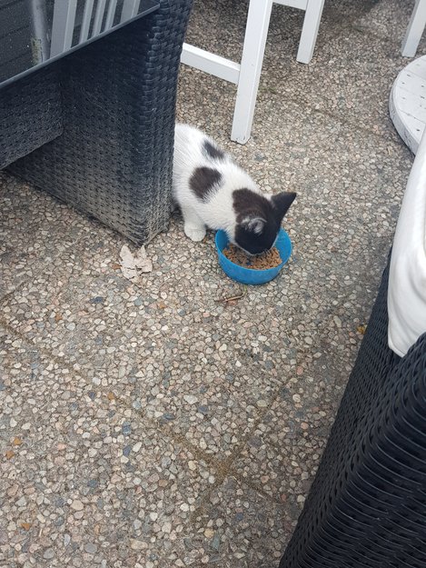 Funnet utenfor huset, ville ikke dra. lå under en av våre biler hele dagen.
