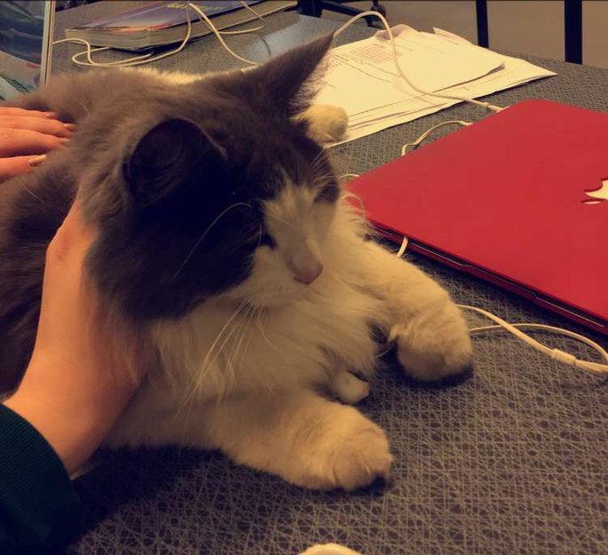Muffin er utrolig sosial og kosete, hun løper gjerne etter deg om hun ikke får oppmerksomhet. Hun er chippet, men selv har jeg ikke vært i kontakt med eierene.