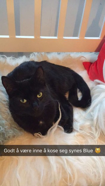 NB: mulig lokalisert 2,5 km hjemmefra - vært et område der i samme tidsrom, blitt mye jaget og var derfor veldig skremt da vi forsøkte lokke henne til oss. Har noen en kattefelle å låne oss? Blue er ei rolig fin katt som er hjemmekjær - alltid innom oss flere ganger om dagen/kvelden og koser seg men har nå vært borte i snart 4 døgn - noe som ikke er likt henne. Vi har sømfart området og snakket med mange - ingen har sett henne!