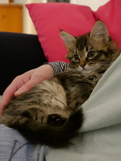 Bildet viser ham som 3 mnd gammel kattunge. Han er nå 1 år gammel.