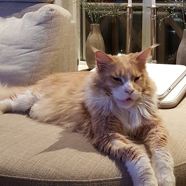 Den er litt skjev i skjeven på høyre side. Klippet litt kort på høyre side. Han er ikke den som går bort til folk. Litt sky.