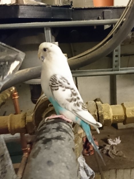 Hvit med litt blått fugl funnet i Oslo