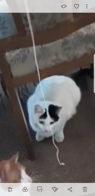 Hvit liten pus med svart hale og et svart øre. Myk og kort pels. Hun er chippet,husker bare ikke chip nr🙈🙈