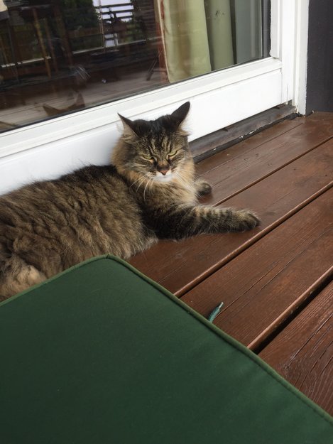 Vi tok med katten til dyrlegen. Katten hadde heldigvis chip, og dermed løste saken seg lett.