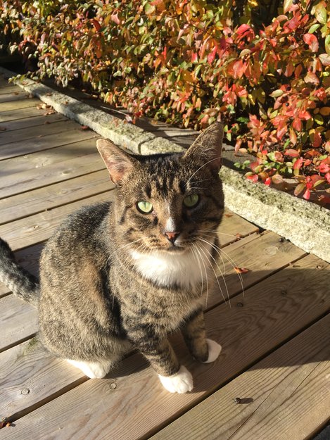 Sist observert på terassen utenfor hiset i 19 tiden. Deretter kom han ikke inn til kvelden. Ikke observert siden. Har letet i området.