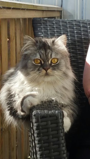 Georg er på sommerferie i Kongsberg. Hoppet ut av vinduet i 1.etasje i Granittveien 11. Han er en innekatt og ikke vant til å være ute. Han er ganske sky og kommer ikke bort til folk. Vi tror han ikke har gått veldig langt fra ferieplassen.