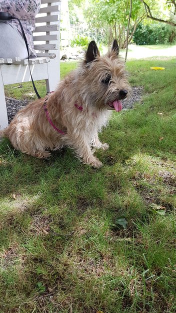 Lys besh, sorte ører hannhund ble funnet i Nesodden