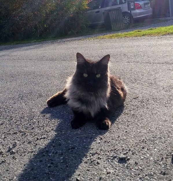 Liten til hankatt å være, selskapssyk, matglad og kosete. Gråbrun, myk og langhåret pels, med nydelig hvit underpels. Lyder navnet Aske. Har de siste 4 årene alltid holdt seg innen 1 km radius fra hjemmet, men er nysgjerrig og tar gjerne en tur inn i biler, gjennom vinduer og lignende.