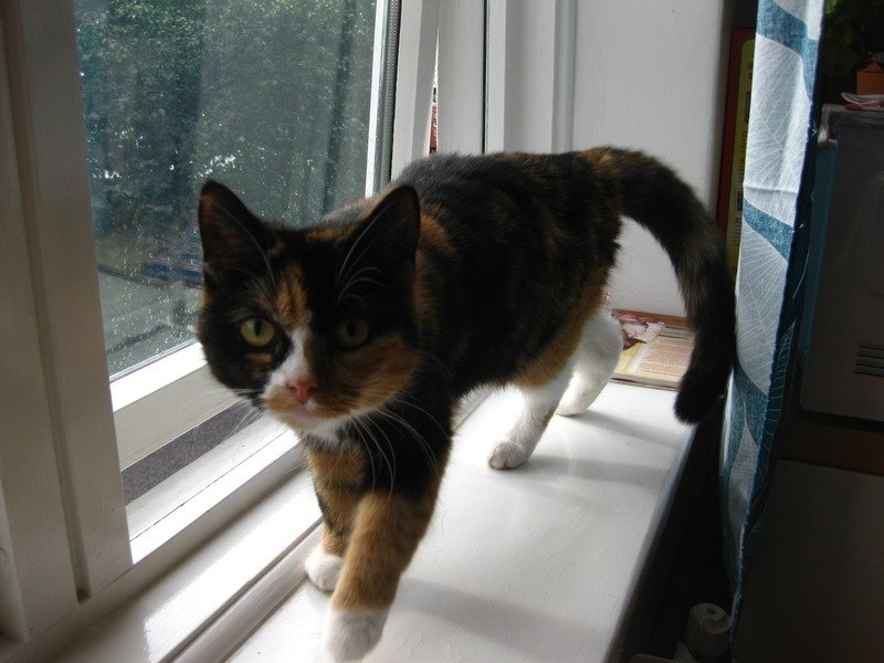 Bott i buskarna ute på vår gård i ca 4 dygn så härom dagen när det ösregnade tog vi in den till oss. Veldigt snäll och kelen, går på lådan, måste ha levt i familj tidigare.