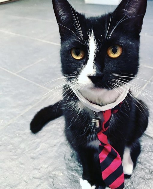 Veldig lett gjenkjennelig med hvit stripe i ansiktet. Grått og svart halsbånd