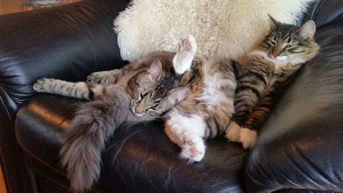 Nelson er glad i ro og fred. Han kommer også opp på fanget og er glad i kos og viser maven hvor pelsen har hvite striper.