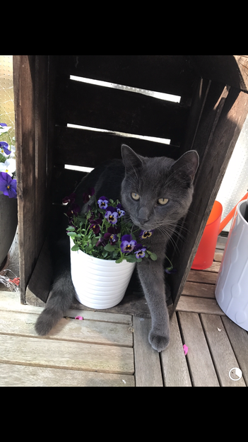 Slank, helgrå katt. Litt skeptisk til mennesker, vil ikke bli kost med av fremmede. 2 år gammel. Bruker oransje reflekshalsbånd med telefonnummer på.