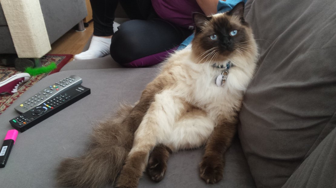 Han er savnet siden klokka tre i dag. Han har en liten område når han bruker å gå og han holder seg aldri bort for lenge. Vi søkte ham for et par timer og normalt reagerer han på våre stemmer og meows, men nå kan vi ikke finne ham. Han har på seg en GPS, men det fungerer ikke riktig. Det kan betyr at han er et sted inne.