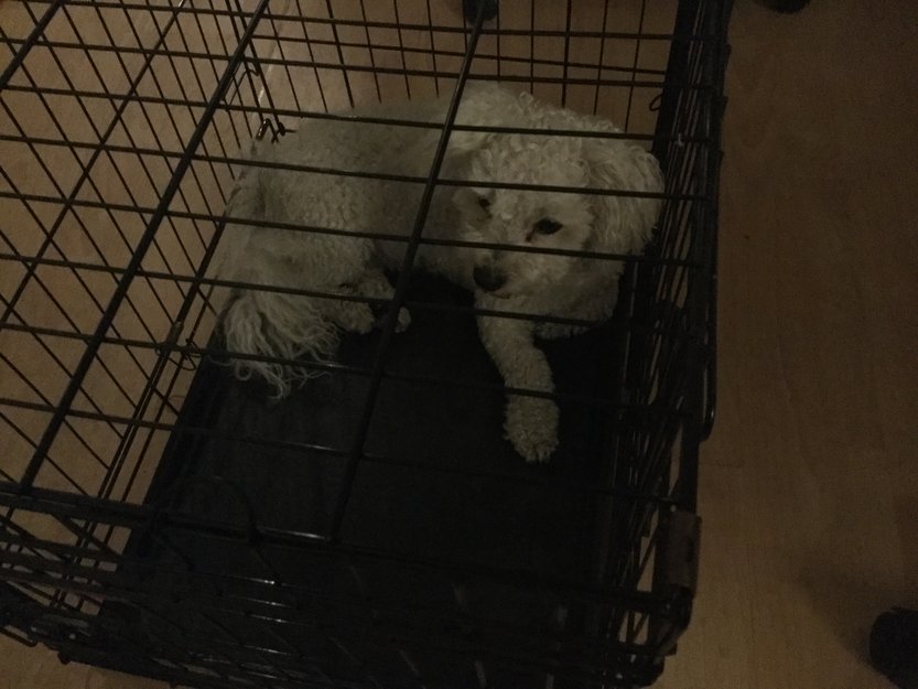 Fant en Bichon Frise hannhund da jeg gikk tur i natt med mine fire tisper og en som har løpetid som antakeligvis lukta godt så hunden fulgte oss hele veien hjem.