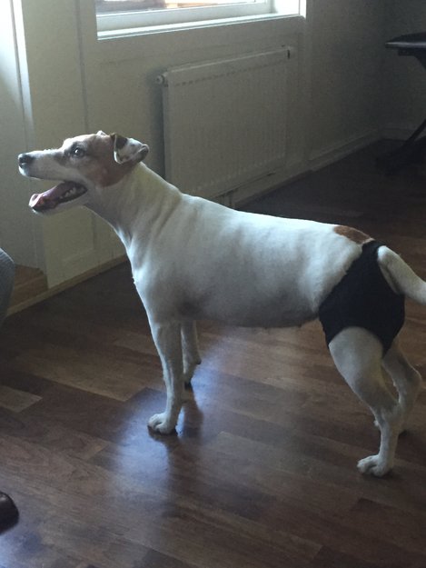Vi gikk på tur med hunden, og vi traff eiren som bor i nabolaget.