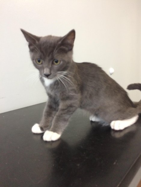 grå med hvite labber og litt hvit på bryst og under magen. veldig kosete