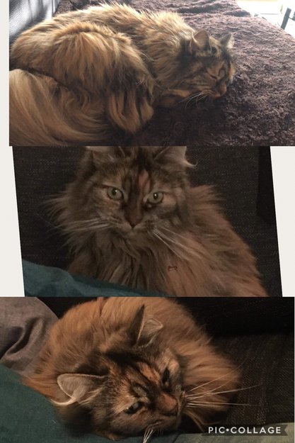 Liten katt. Har krøllhale. Den ligner på en kurilian bobtail. Veldig kosete når hun kommer nærme. Blir fort veldig tungpustet. Svarer ofte til navnet sitt (Paula).