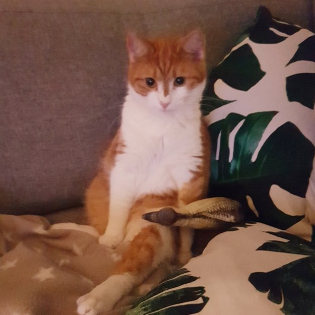 - Han har blitt sydd og har et arr på venstre pote etter et fall. (Sikkert grodd igjen)