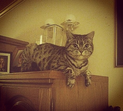 Savnet katt, liten og nett sterilisert frøken. Grå med sorte tegninger og spottet (sorte prikker) og med hvitt bryst. Lyder navnet pus.