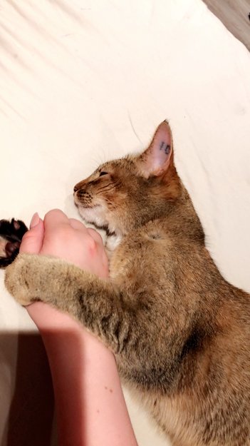 Tynn og elegant, veldig vakker katt. En ID tattovering i øret, grønne øyne