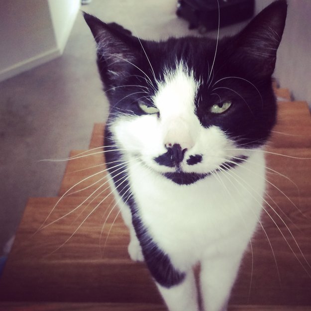 Hun er liten av vekst og har hvit haletipp. Hun er snill og bestemt.