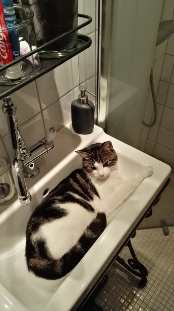 Etter et par dager med leting, og mjauing, kom han tilbake og jeg fikk lurt han inn etter et par timer midt på natta💕 redd men etter litt mat sovna han som en stein i kroken min 💕