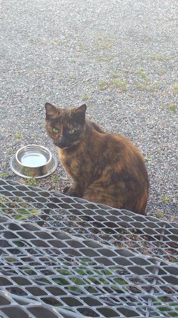 Dette er en litt lengre historie som jeg skal prøve å gjøre så kort som mulig. Dette er en katt som vi har sett rundt huset ved flere anledninger siden i fjor høst. Vi har trodd at den tilhører til et av husene rundt oss ved Eplehagen (vi bor i Ryghbakken), at den er eid av en nabo. Vi stusset litt i vinter da hun stadig var ute da det var veldig kaldt. Jeg lagde en hule med isopor og tepper i garasjen vår som jeg tror ble brukt ofte/hun bodde ofte i garasjen om natta. I noen perioder ser vi mye til henne og andre perioder ikke. Jeg burde kanskje laget en "funnet" side før dette, men i dag kom hun og mjauet noe veldig, hun så ekstra tynn ut så jeg bestemte meg for å gi henne en pose med våtfor og vann. Hun drakk en del og all maten var borte i løpet av et kort minutt. Det hadde vært veldig fint å få bekreftet at hun har en eier i området. Ellers vil jeg anta at hun har blitt dumpet, for hun er veldig folkekjær.