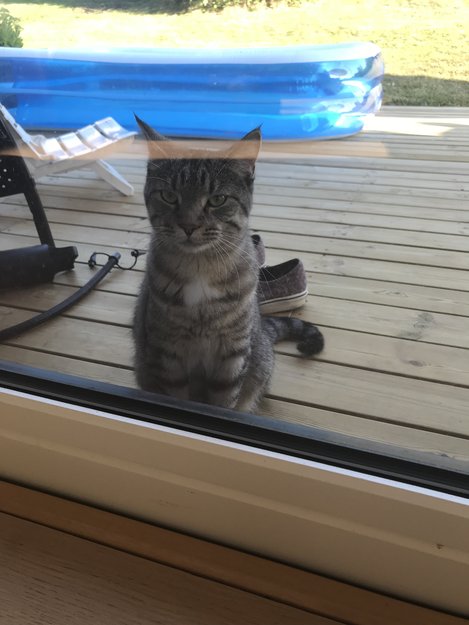 Dukket opp utenfor hos oss søndag 22. juli. Veldig kjælen og virker som den er borte fra hjemmet sitt. Vil veldig gjerne inn.