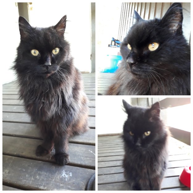 Denne katten er langhåret og bamsete kjukk pels. Svart brun farge. Syns nesen er noe flatere enn andre standard utseende katter og avstand mellom øynene noe annerledes. I første omgang ser den ut som en normel pus, men i 2. omgang litt spesielt ansikt. Hjelp denne nydelige pusen hjem♡