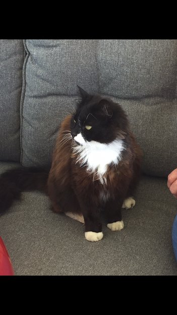 Sort langhåret hunnkatt, med hvitt bryst. Noe rødbrunt skjær i pelsen over ryggen. Veldig kjælen. Lite lyd i mjauingen, ofte som svake pip. Lang og fin hale m en liten klump på tuppen. Katten er chipet og sterilisert. Lucy er en liten og søt katt. Veldig savnet.