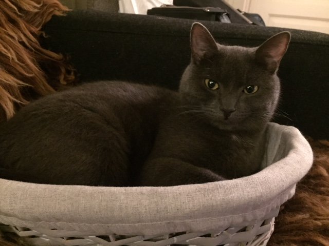Har et lysegrå halsbånd med en liten bjelle hvor telefonnummeret 92600465 er håndskrevet på. Har en liten hvit flekk under haka. Hun er sky, men la seg sikkert lokke med mat.
