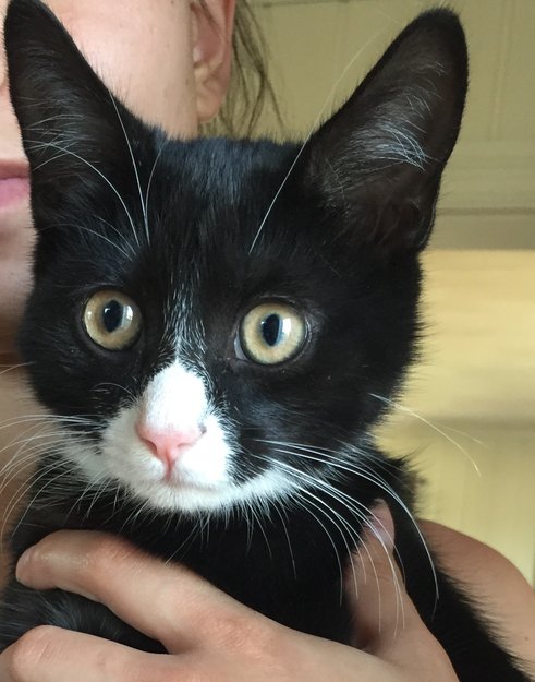 Kattungen har oppholdt seg i en hage i flere dager. Han er helt tam, ukastrert og uten ID. 10-12 uker gammel.