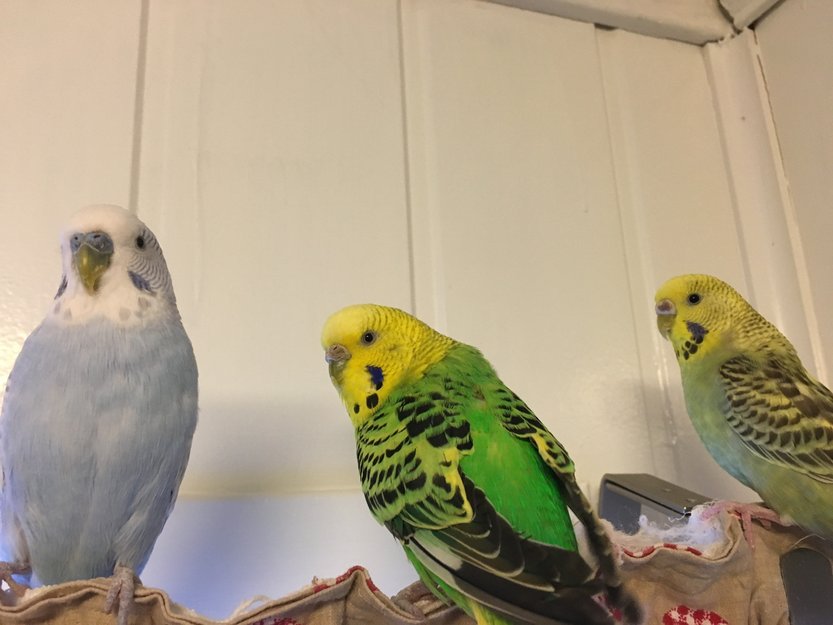 Hadde vært å kjøpt deilig hirsekolbe til de 3 fuglene våres, kom til bake med 2 fugler igjen, hadde tydeligvis glemt å lukket burets åpning. Blir så svimete i denne varmen, bildet viser amigo som er helt til høyre