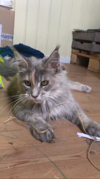 Hun tuslet inn i huset vårt idag. Vi har dører oppe for å lufte og plutselig satt hun der midt i stua. Virker ung og tillitsfull. Gikk av gårde igjen men kom så tilbake etter en times tid og mjauet etter kontakt. Hun ligger og sover i min seng i skrivende stund og virker veldig avslappet og rolig. Dører er oppe og hun har full frihet til å gå ut. Ligger litt på veranda og i oppkjørelsen så hun virker veldig tam.