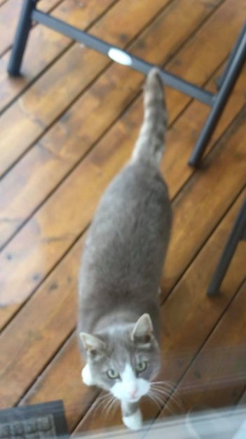 Vi var på ferie fra den 17nde til 31 juli. Det ble satt ut mat og drikke på verandaen annenhver dag av en bekjent. Da vi kom hjem fra ferie så vi ikke katten og den har enda ikke dukket opp.