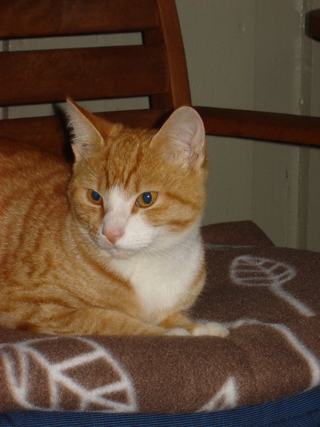 ble sett på breimåsan i skogen, må ha fulgt etter da den plutselig stod på trappa hos oss og ville inn. han har funnet seg en stol utenfor døra hvor det ser ut til at han liker seg.